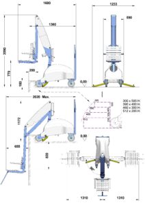 | Maximální pohyb ramene: | 1.500 mm | 1.600 mm | 1.400 mm | 1.150 mm | 1.260 mm |